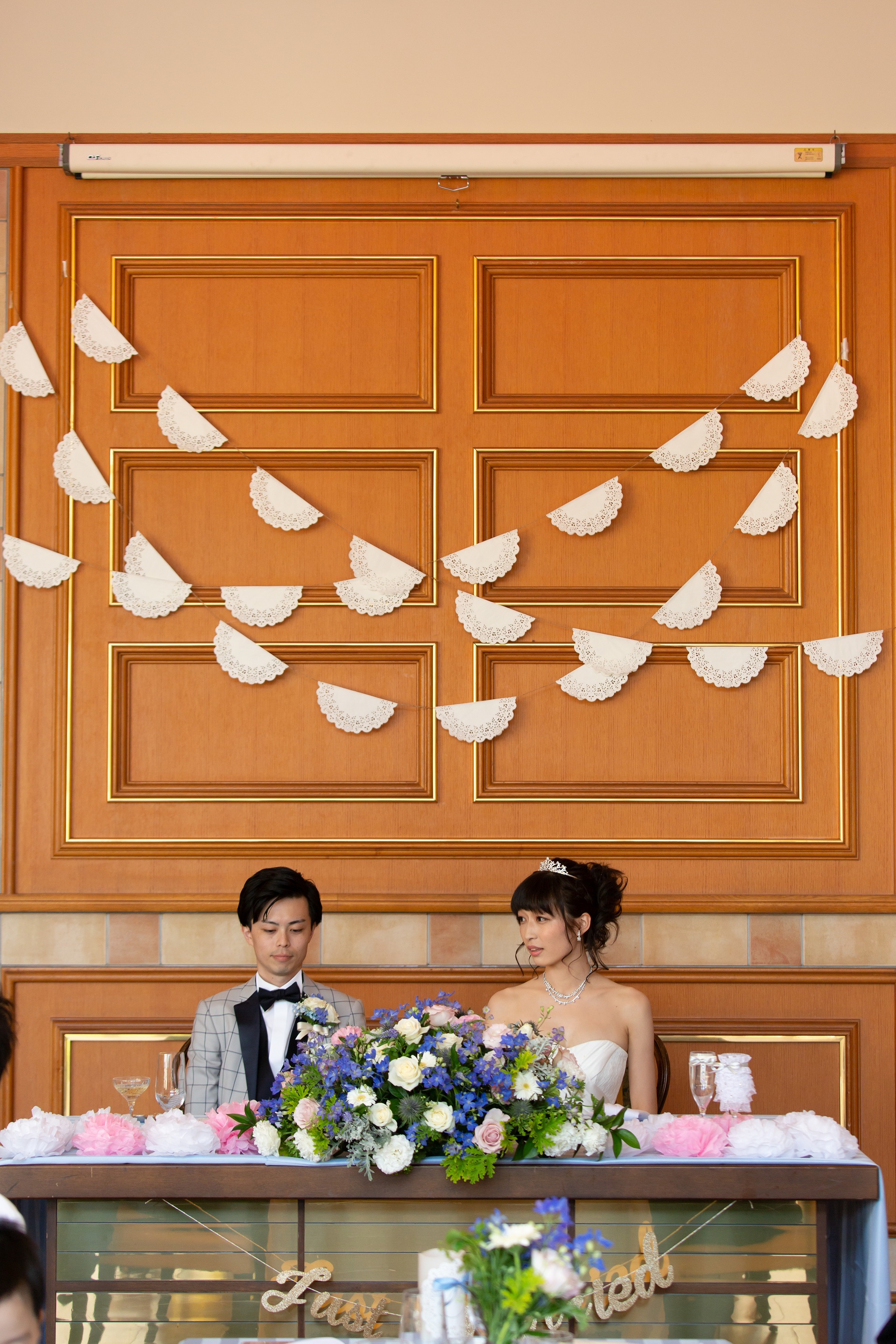 高砂席の壁に飾ったガーランド☆彡