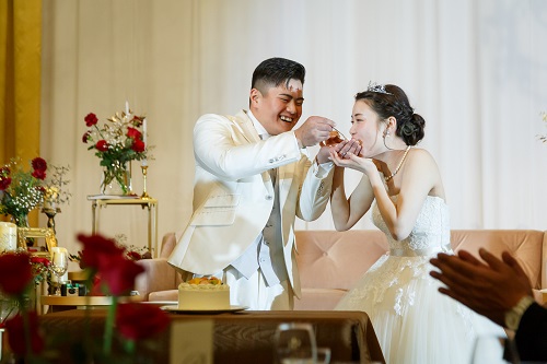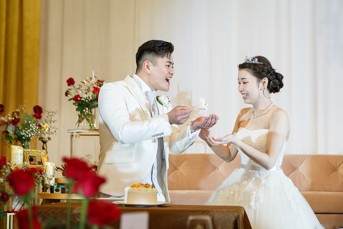 ウェディングケーキを食べさせ合うことです♡
