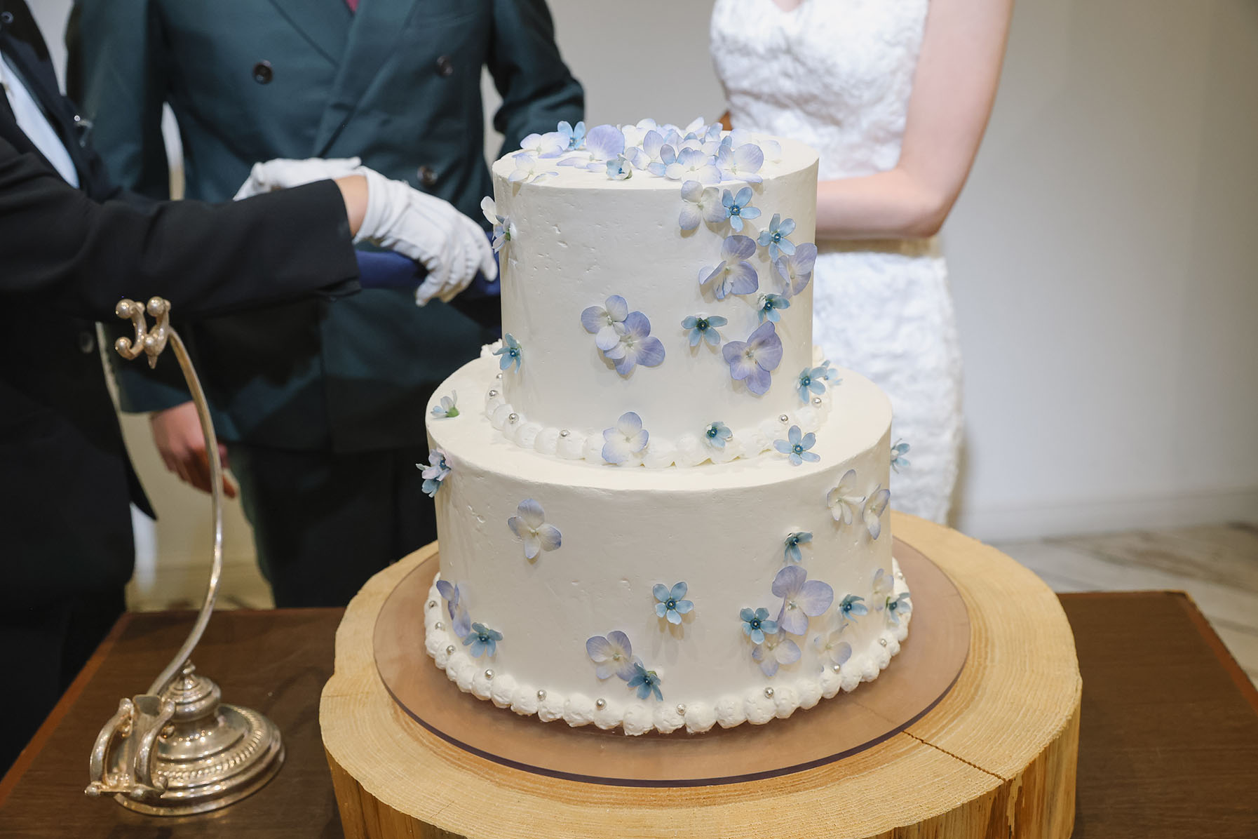 ケーキ入刀の瞬間、シャッター音と歓声に包まれる会場