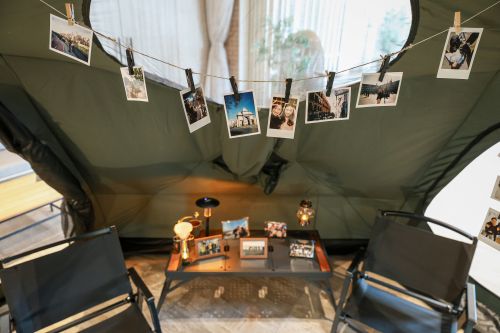 お二人らしいテントの飾りつけとランタンの挙式証明書は、私も初めての試みですごくワクワクしました!
