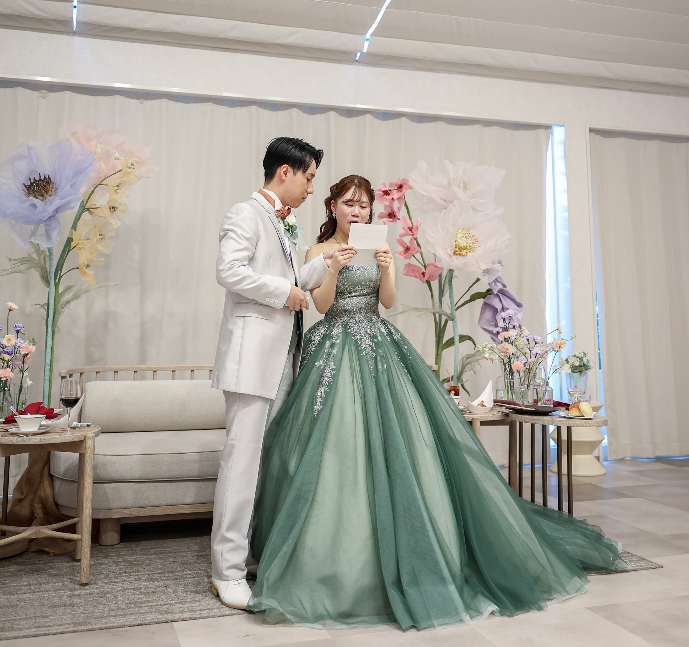 また、人前式では誓いの言葉を自分たちで考えて読み上げ、より自分達らしい挙式にすることが出来ました