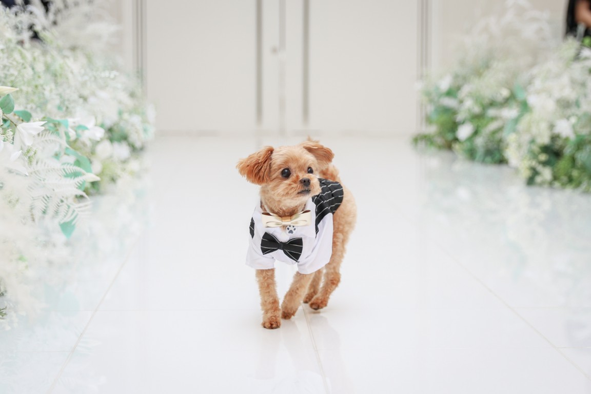 挙式での「リングドッグ」や「肉球証明書」など、大切な家族の一員であるペットと一緒に過ごせる演出がとっても豊富♪