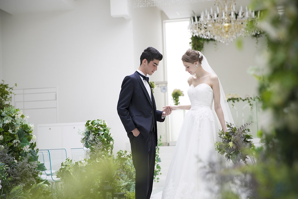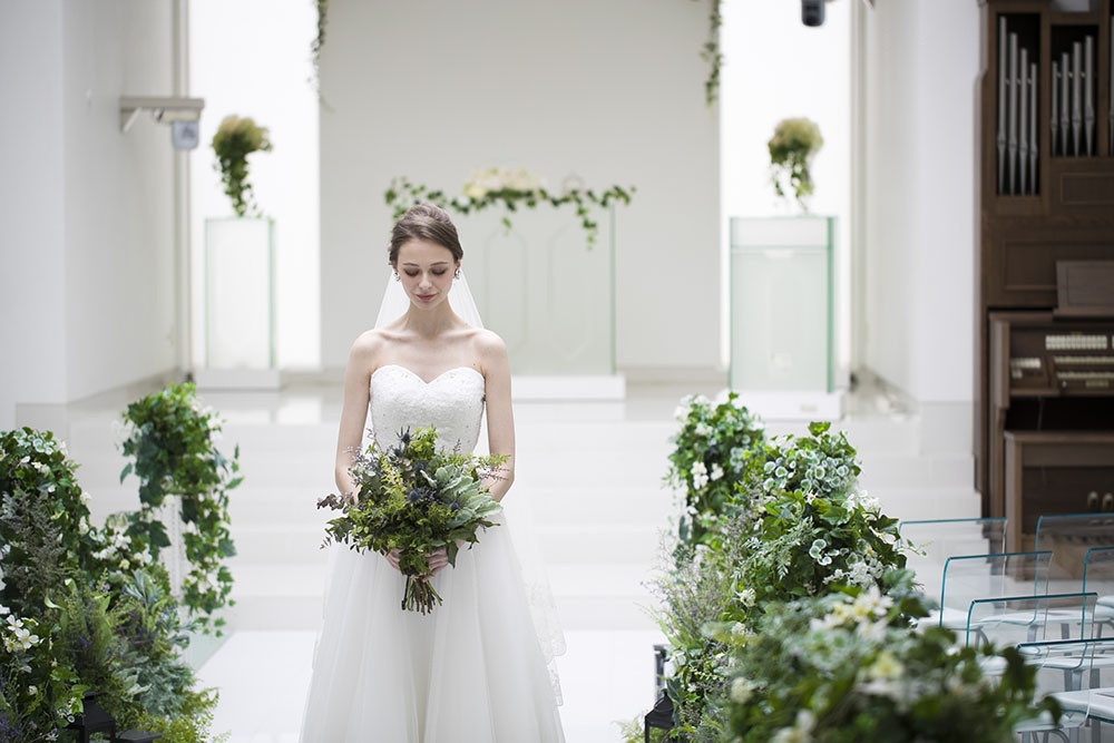 天窓から降り注ぐ光が花嫁の美しさを際立たせます。