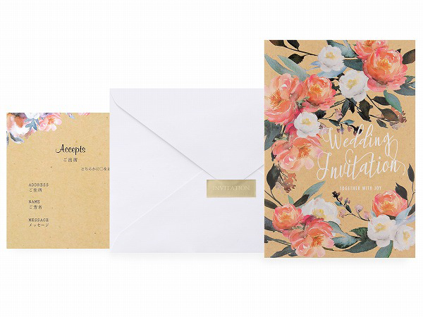 砂浜をイメージしたナチュラルなクラフト紙にボーホーシックなフラワーを大胆にデザイン