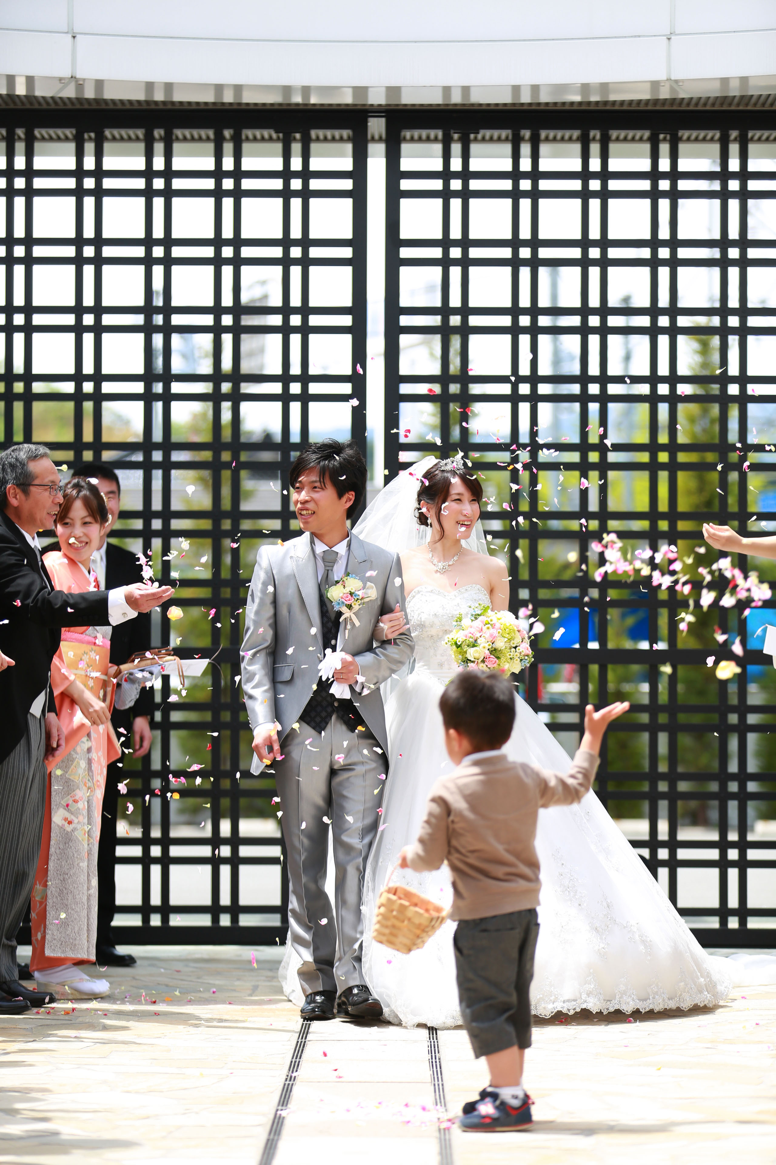 定番はフラワーシャワーですが、お子様におふたりの先導をお願いすれば