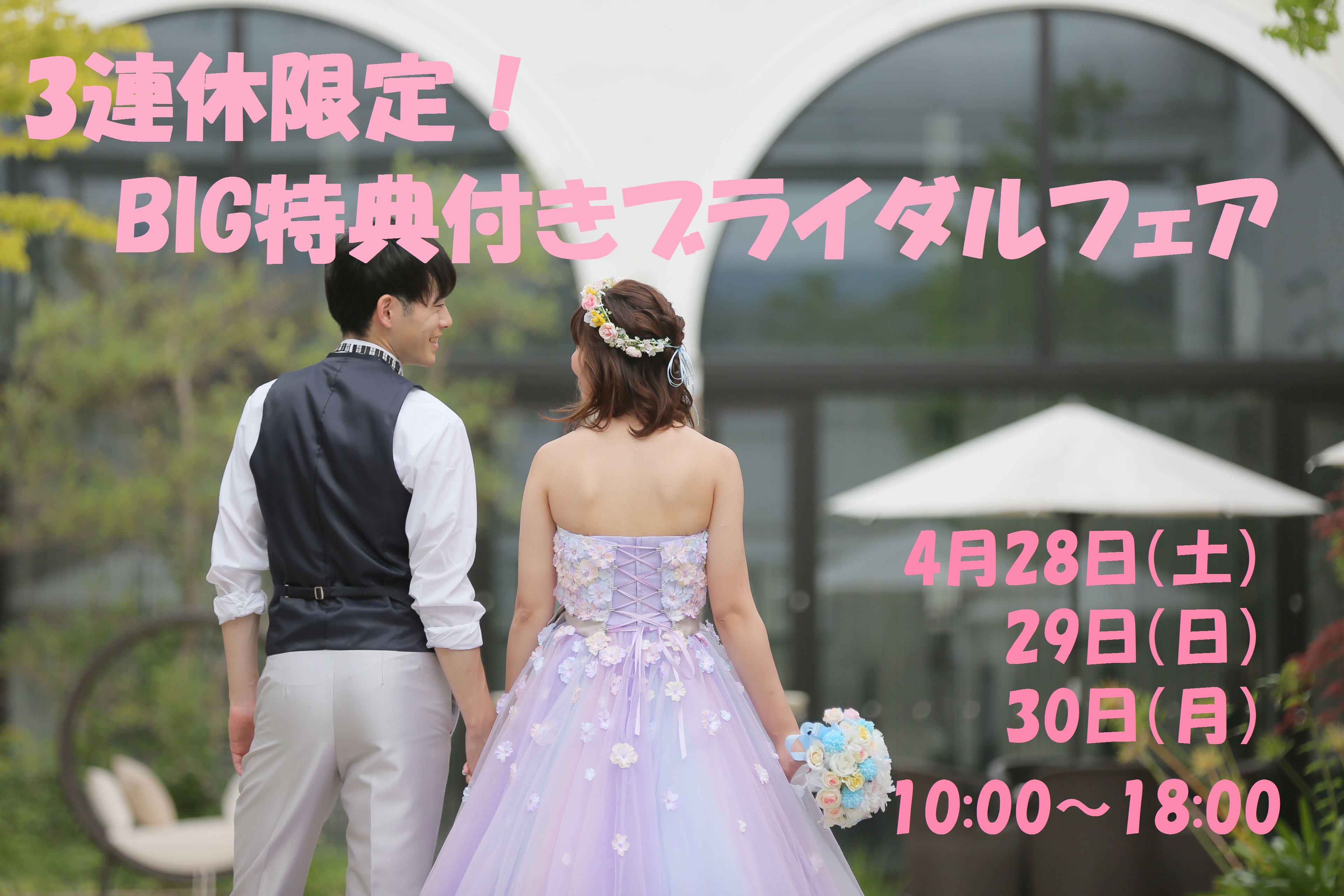 アンジェでは4月末の3連休も、ゴールデンウイークもブライダルフェアを開催致します!!