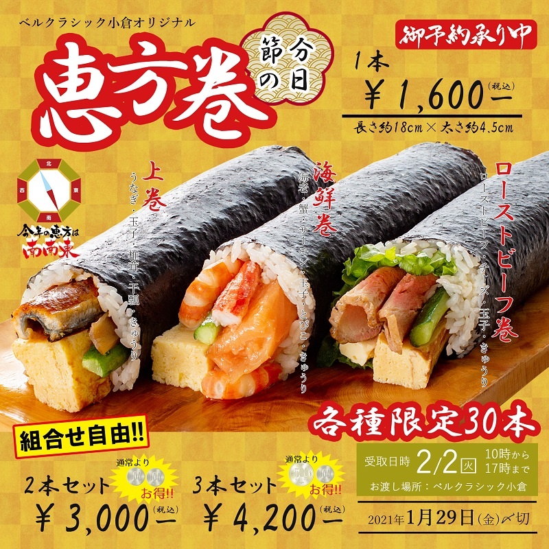 ベルクラシック小倉では、オリジナルの恵方巻を販売しております!
