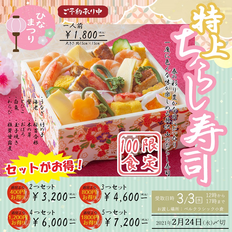 詳しくはトピックスの【ちらし寿司のご案内】をご覧ください!