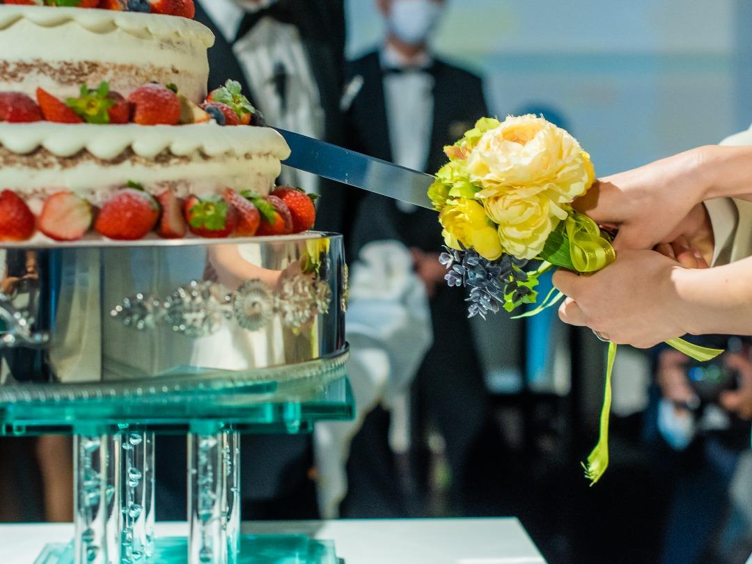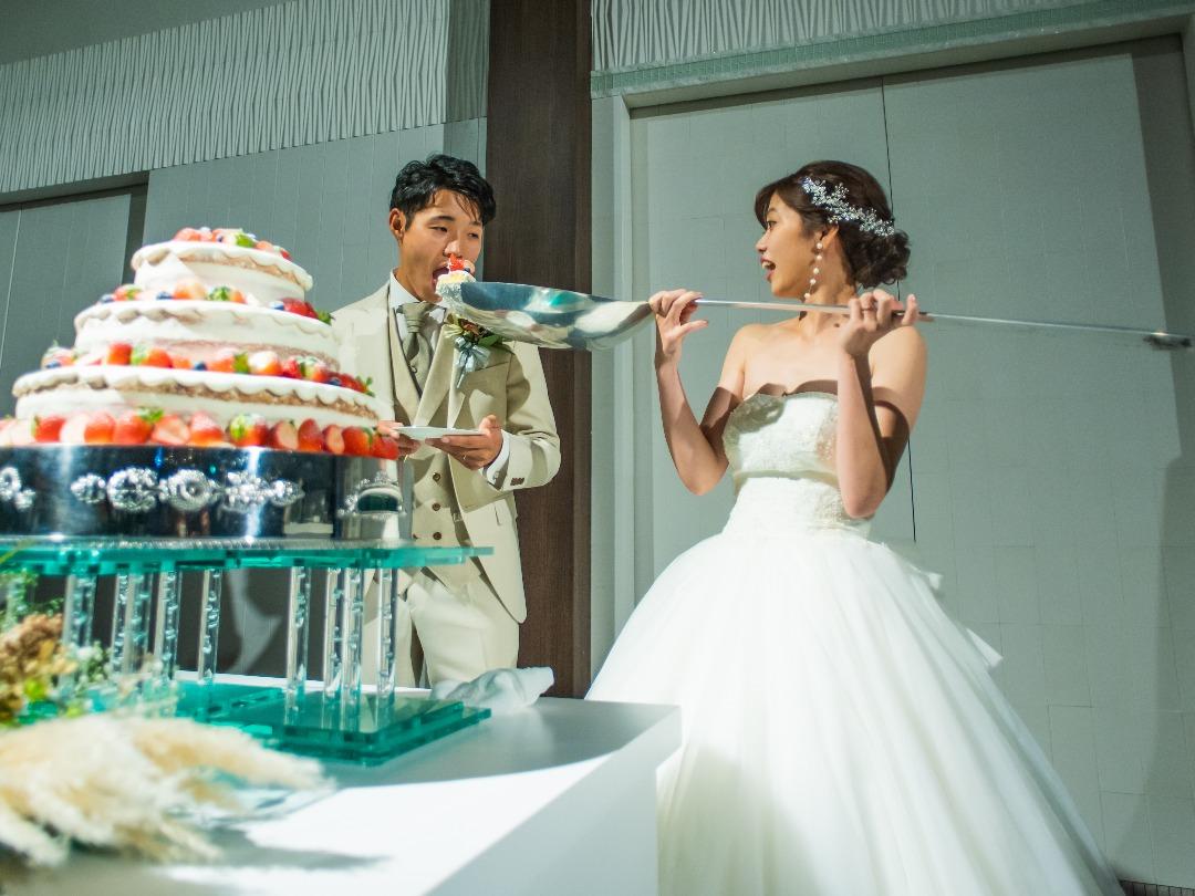 BIGスプーンを使って、新婦様から新郎様へ、ケーキを一口!