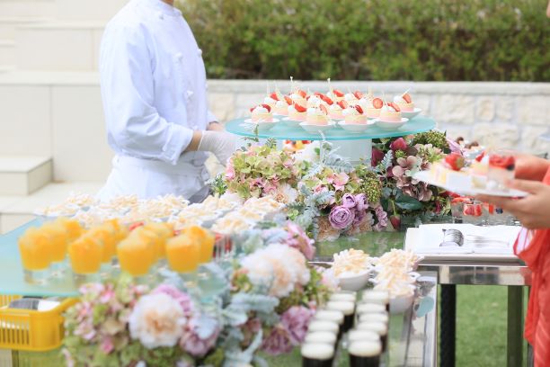 そんなガーデンスペースにコース料理のラストを飾るスイーツビュッフェを