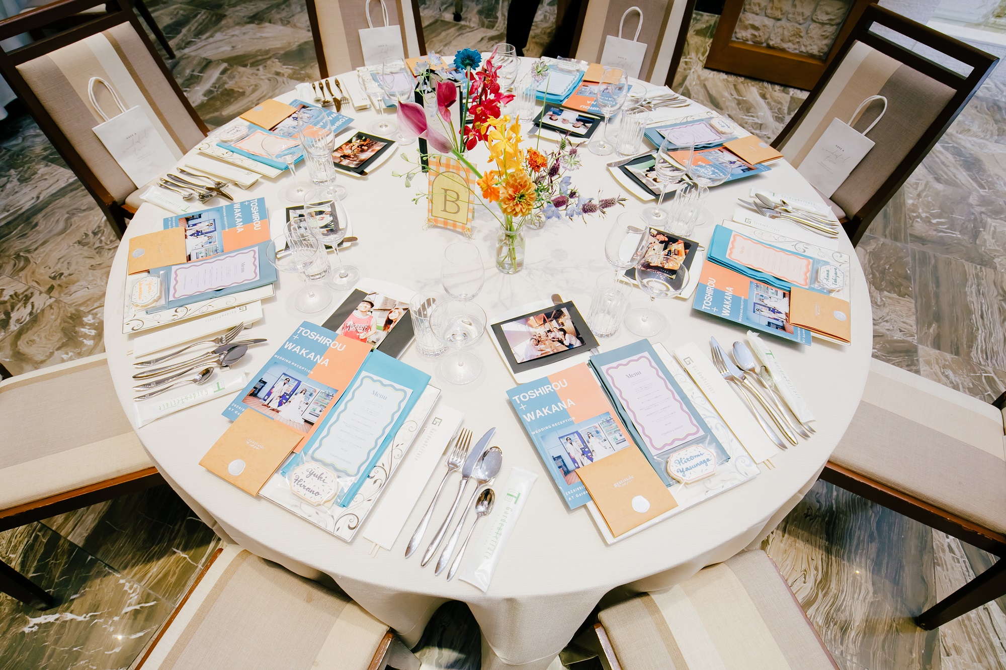 ペーパーアイテムまでもお好きな色味でまとめて統一感のある披露宴会場に!