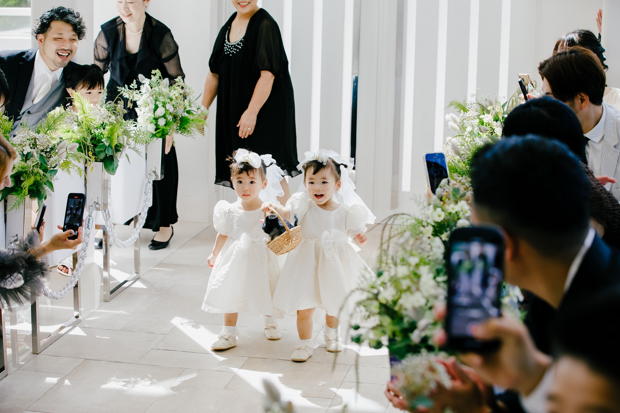 可愛らしいお衣裳に身を纏って大切な指輪をおふたりにお渡しいただきました!