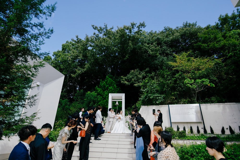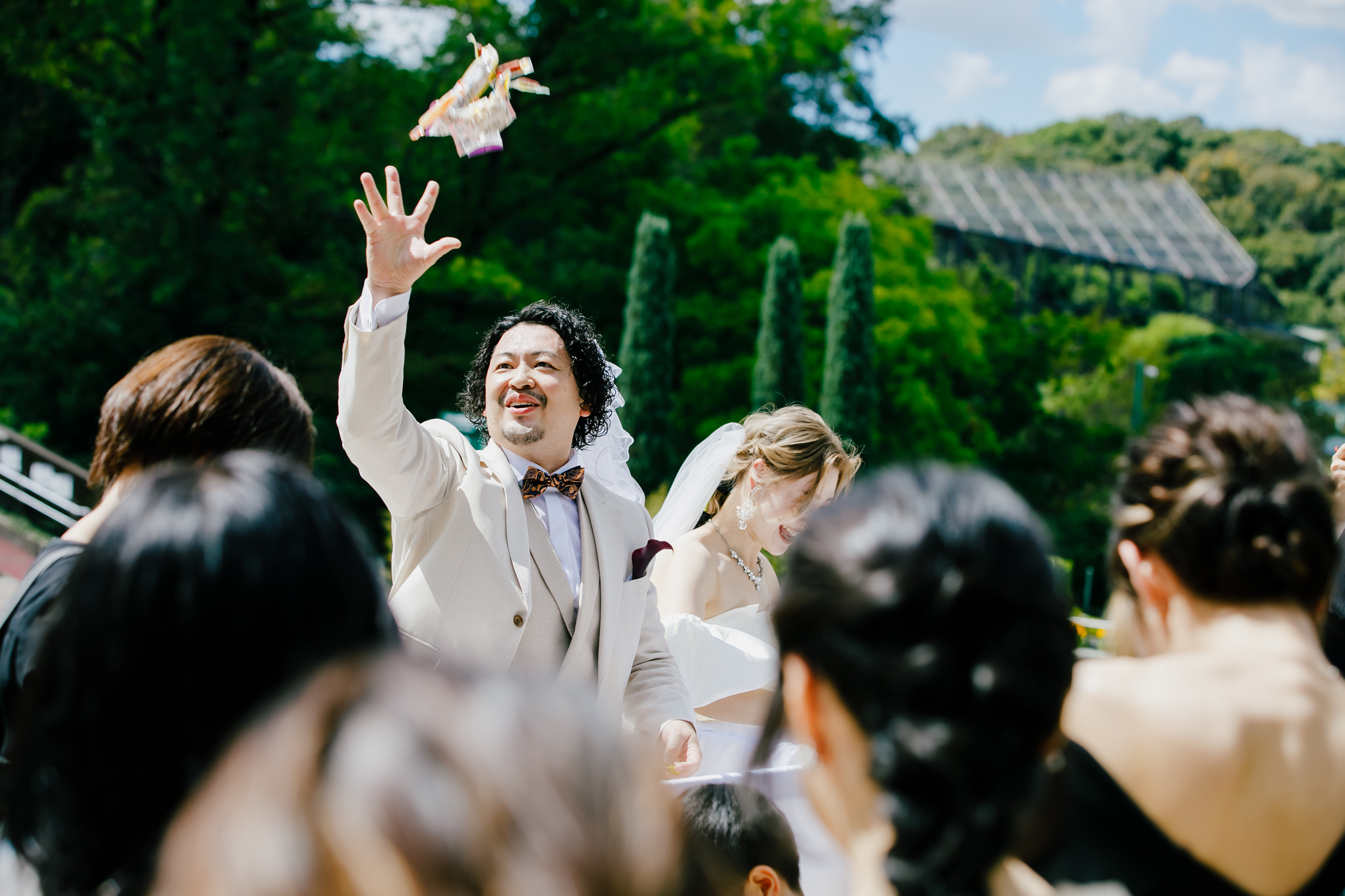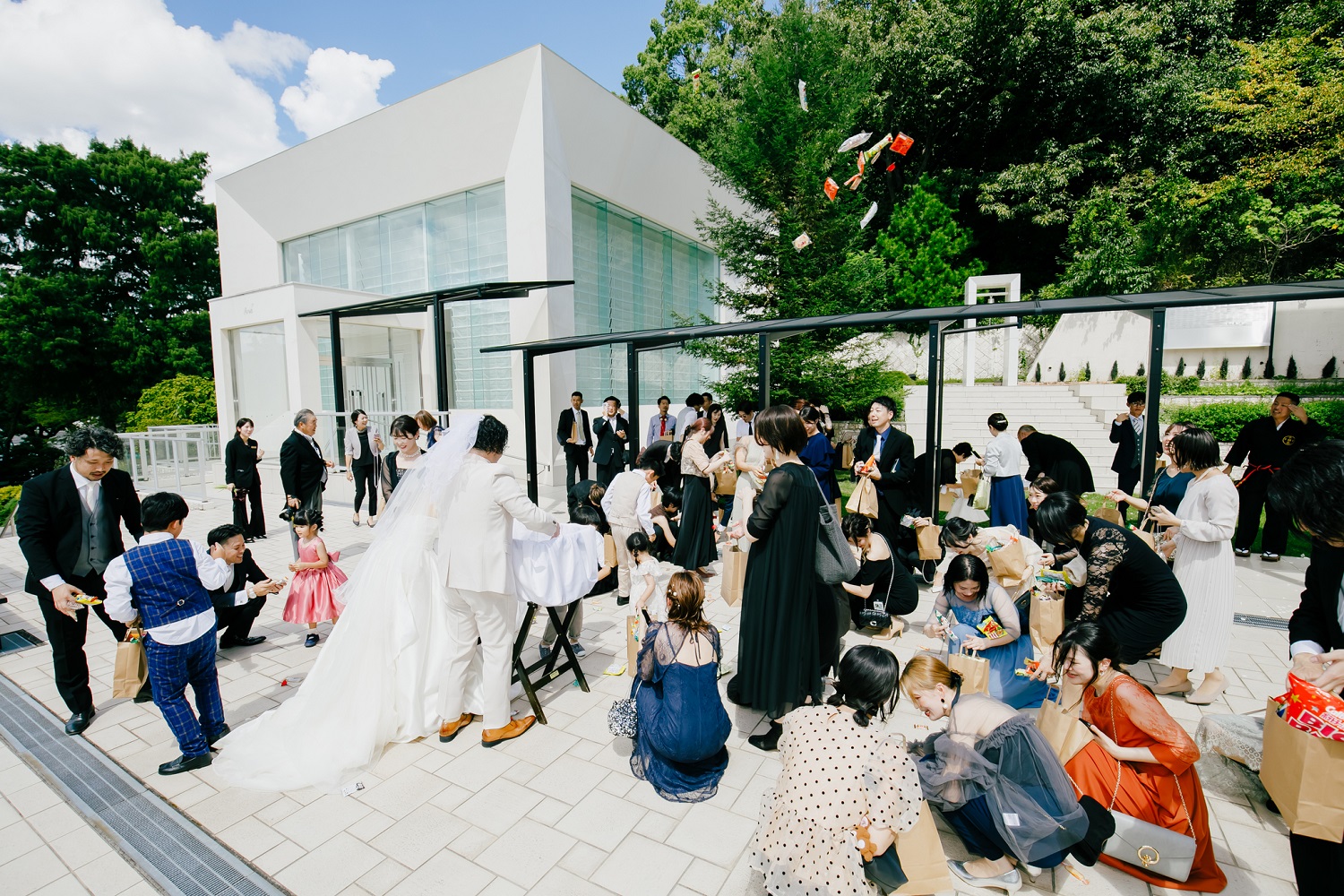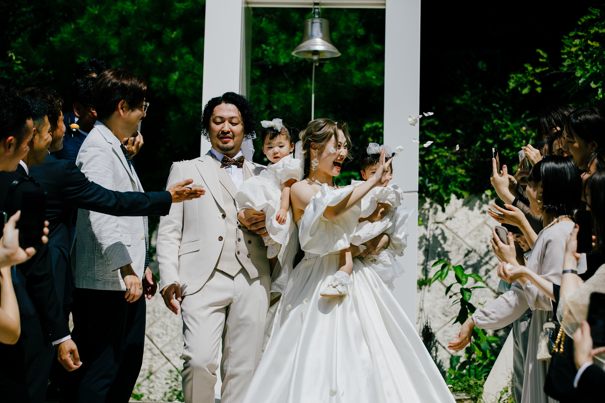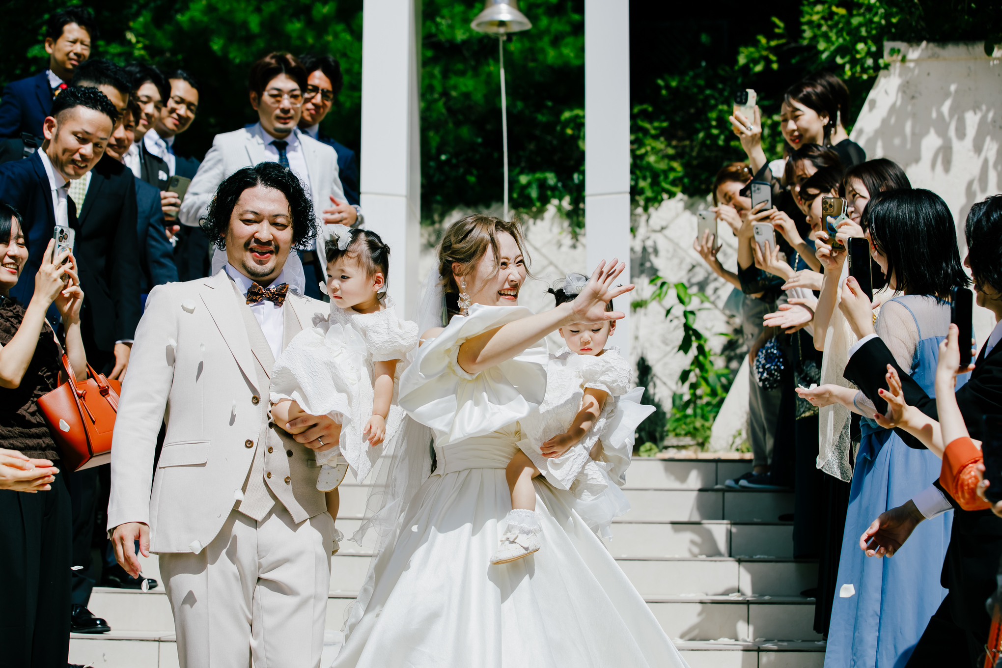 良いお天気に恵まれたガーデンセレモニーでは挙式よりも近い中で祝福をいただき