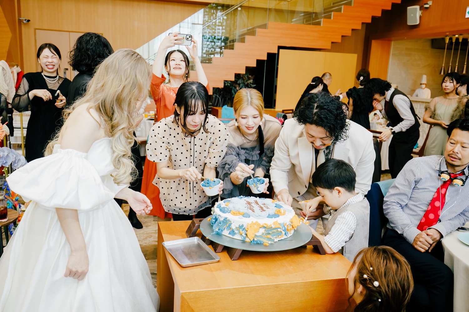 ウェディングケーキもゲストの協力があり この日この瞬間だけの