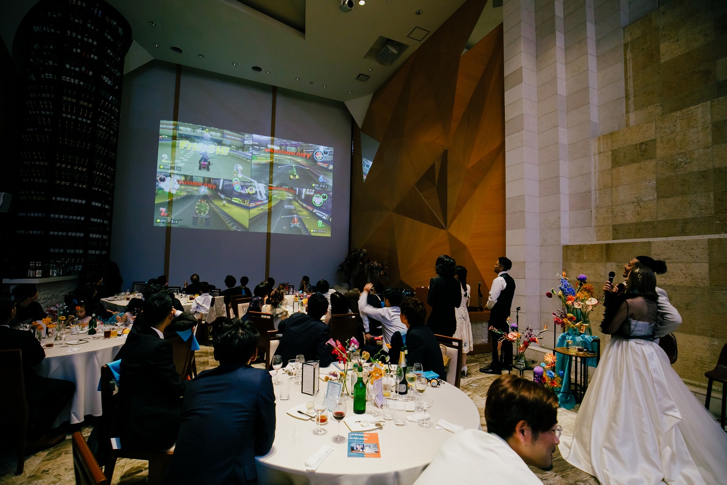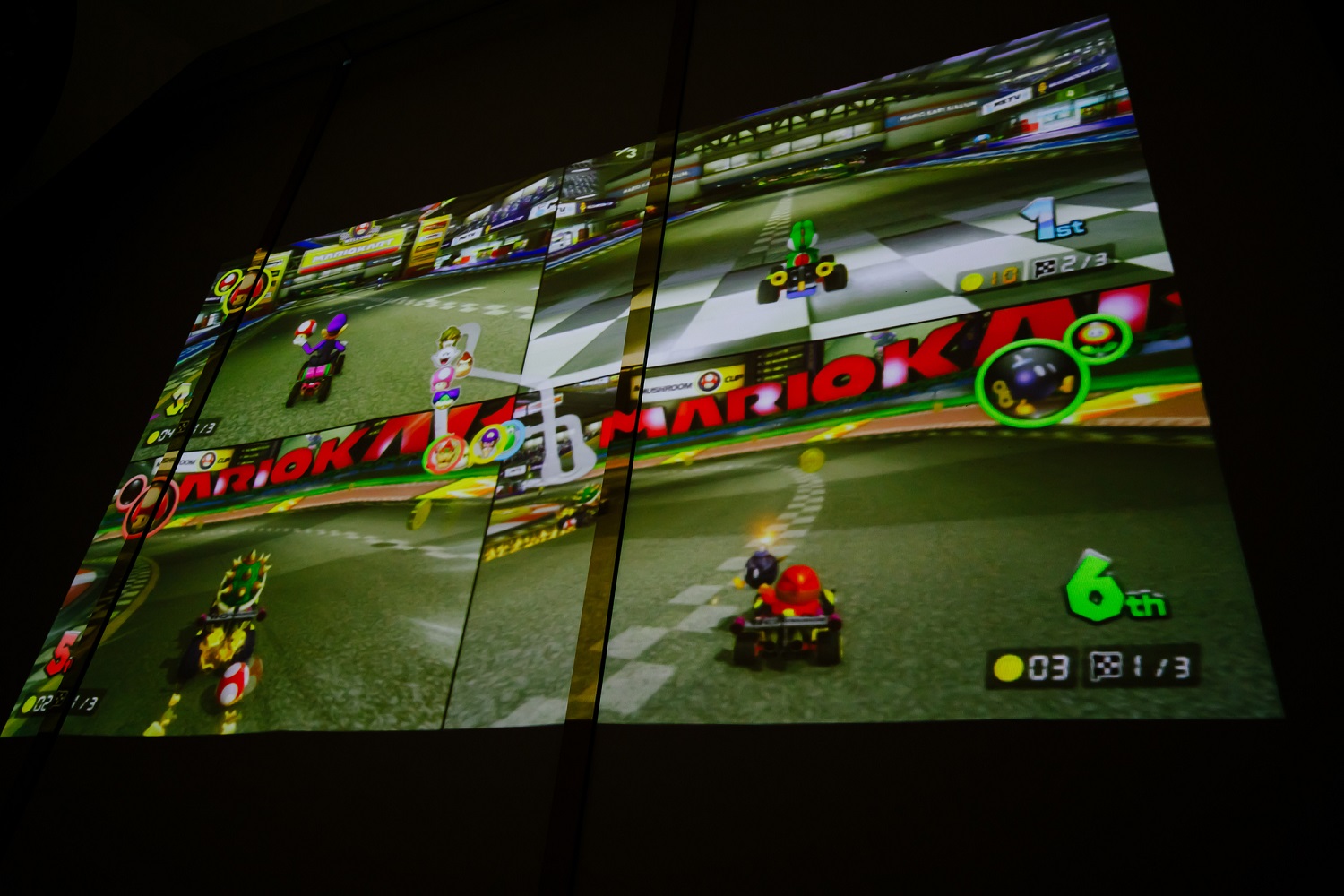 大きなスクリーンで行なうマリオカートは大迫力でゲストも白熱した戦いを見せてくれました!